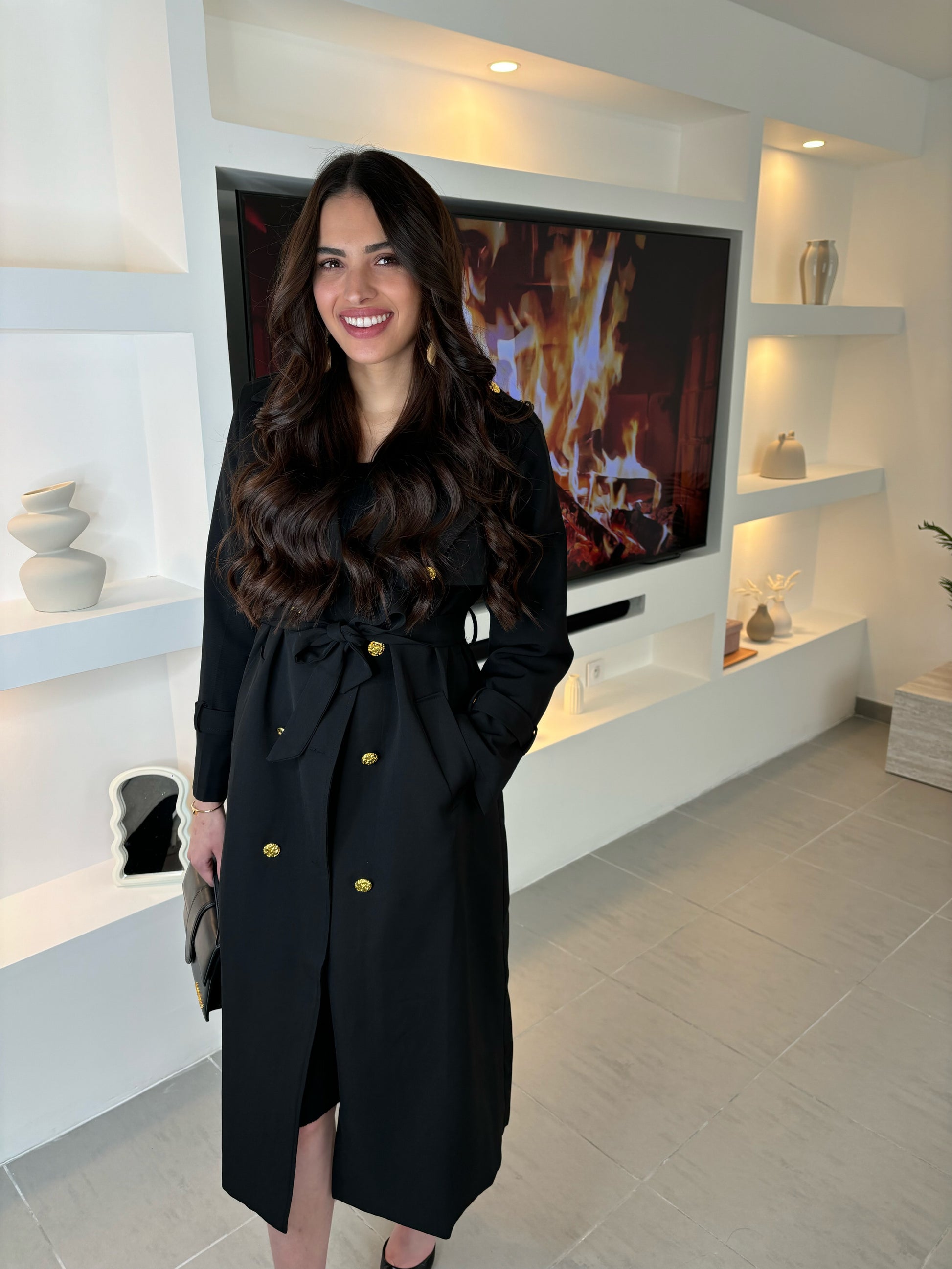 Trench noir bouton doré